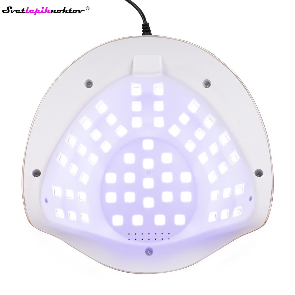 Je tudi udobna in učinkovita. Ergonomsko oblikovana UVA/LED-lučka je opremljena s 60 visokozmogljivimi LED-diodami nove generacije, ki so postavljene tako, da perfektno trdijo vse gele, gel lake in akrilne gele.